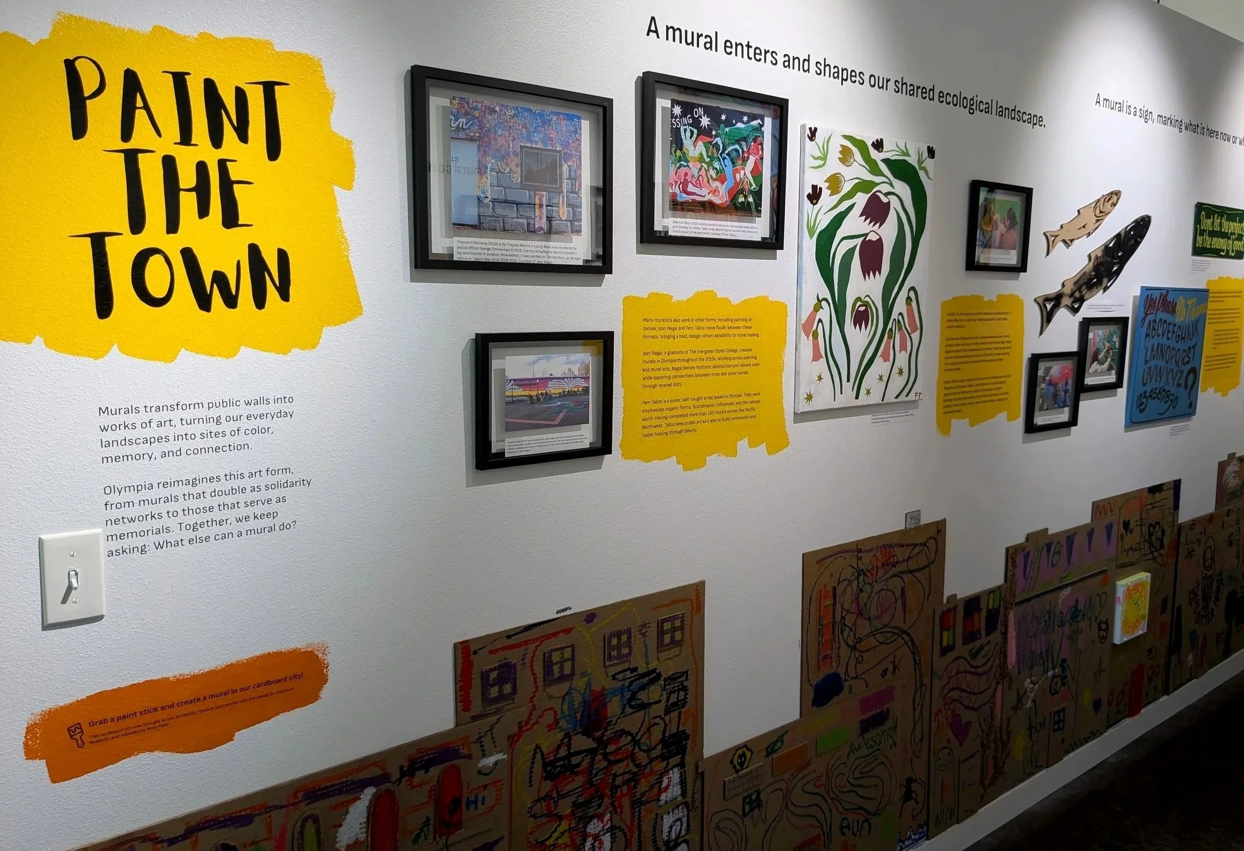 Come Paint the Town with us! Explore Olympia’s mural culture through the colorful artwork decorating our streets and alleyways and turning everyday landscapes into sites of color, memory, and connection. This exhibit also investigates the work murals do in Olympia and beyond—from murals that double as solidarity networks to those that serve as memorials.